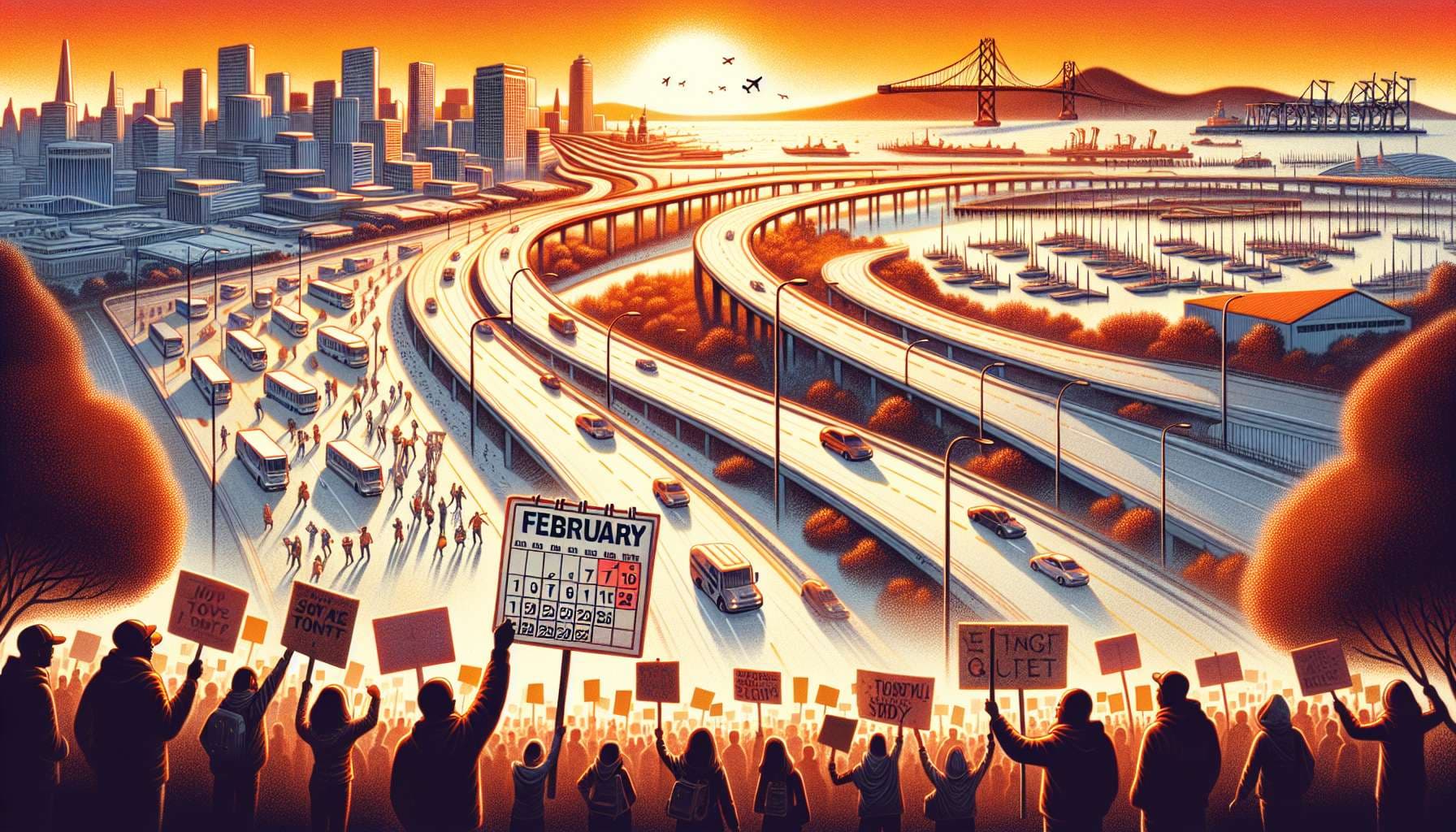 Will a Gaza/Palestine protest obstruct a major highway, port, or airport in the SF Bay Area in February 2024?