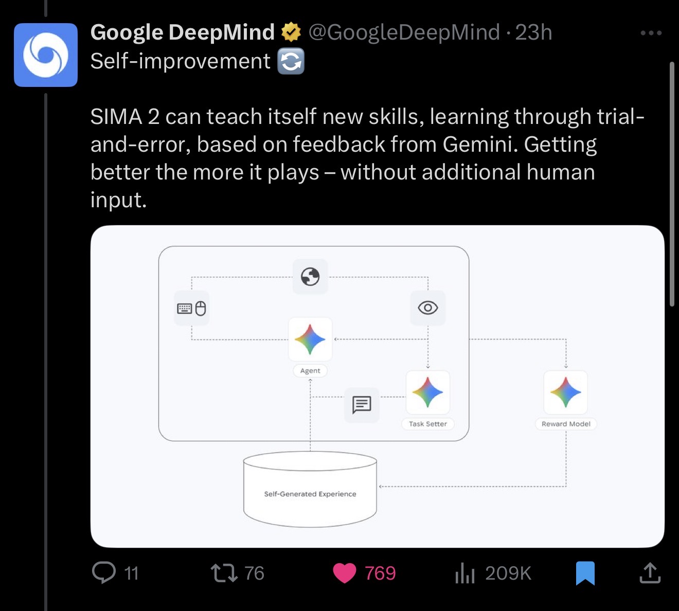 @NathanHelmBurger so even if humans are then cherry picking the best results of the experiments, then human engineers assisted by Cursor etc implement new AI models based on the new algorithms. Human engineers then keep the enormous GPU clusters running training the new models, fixing a steady stream of intermittent failures and maintaining the generators.