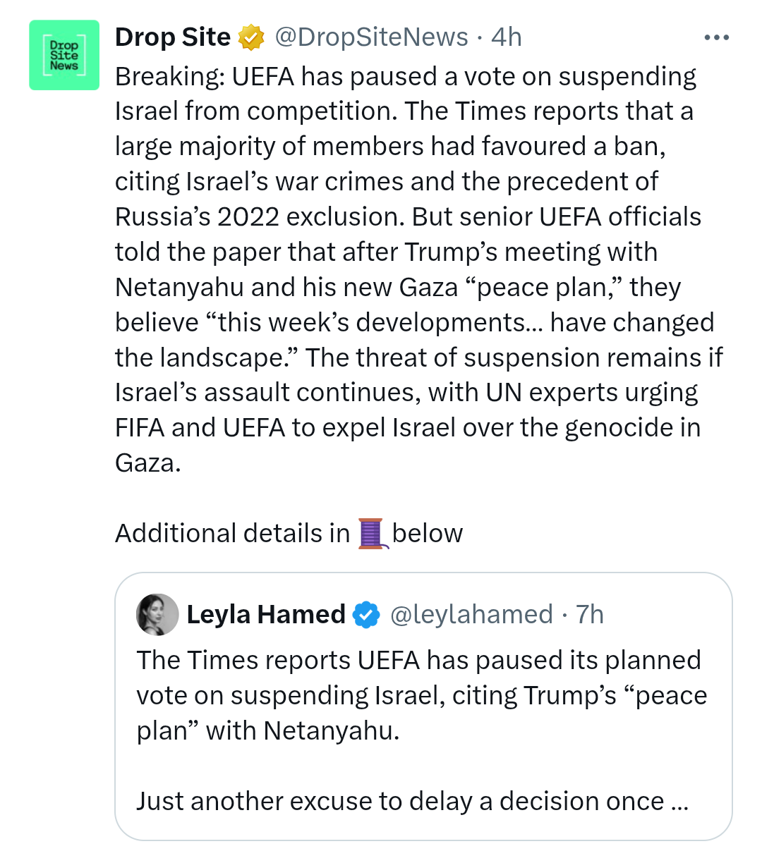 For UEFA I see it also quite unlikely after the peace plan deal.