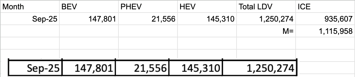 Use Argonne’s September 2025 monthly “Light‑Duty Electric Drive Vehicles Monthly Sales Updates” data:
