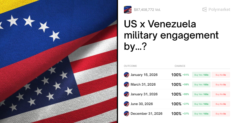 https://polymarket.com/event/us-x-venezuela-military-engagement-by and https://polymarket.com/event/next-us-x-venezuela-military-engagement-on