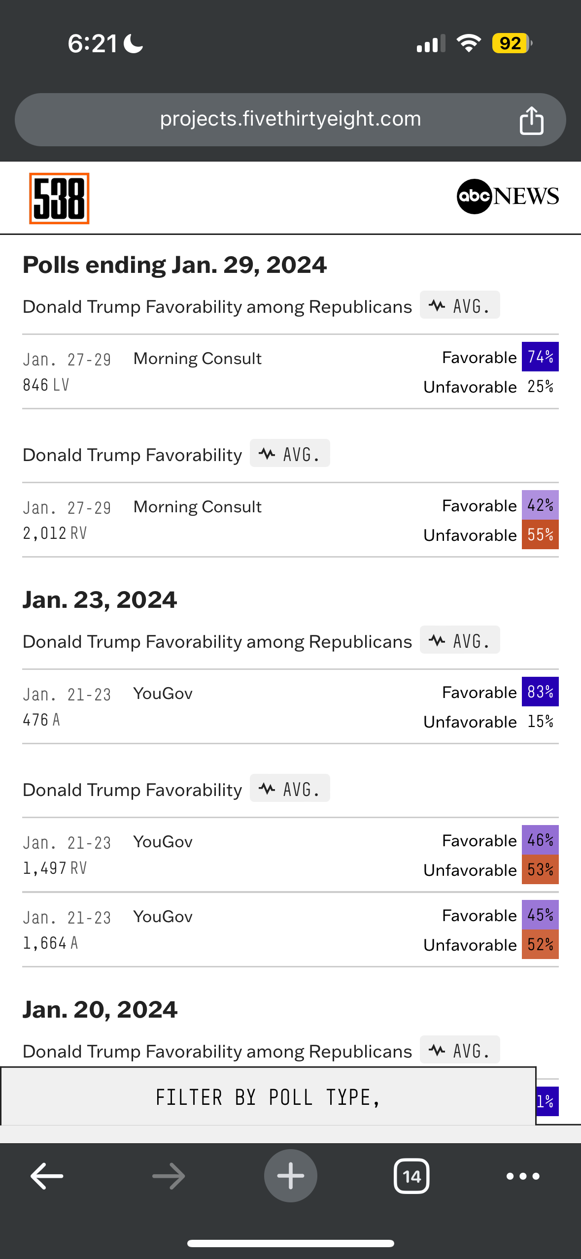 538 polls Trump’s favorability with Republicans and the general populace. His disapproval is always around 15-20% of Republicans.