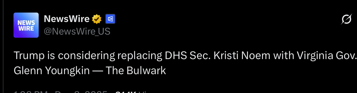 Glenn Youngkin Secretary of Homeland Security by EOY 2026?