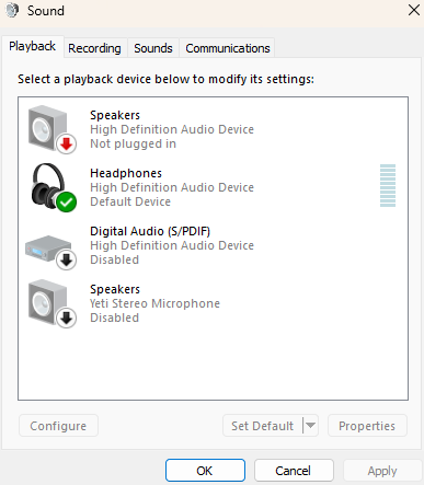 I am currently having an issue where my PC frequently tries to switch to nonexistant default speakers and microphones. This disrupts my usually functional headset audio. As you can see below, I don't have many devices connected and have already made sure the defaults and disableds are correct. I have also checked drivers, uninstalled some possibly superfluous old tech, and edited a registry some folks have a similar problem with. I am happy to answer questions in the comments. Below are screenshots of how the phantom devices look in the fraction-of-a-second they appear before being just as mysteriously removed (sometimes very rapidly for minutes on end). I will bet some more against resolution if this marked is Unranked, otherwise I can just bounty up for a few thousand mana if someone has an answer :)