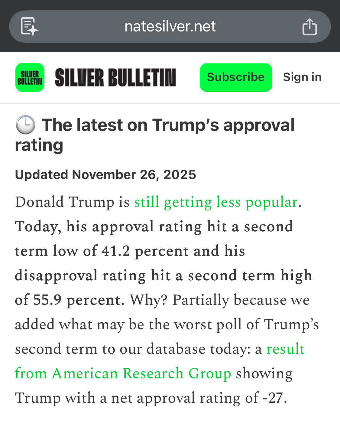 Resolves yes if Trump’s approval rating is higher 2 weeks after the shutdown ends than it is on October 1 (Silver Bulletin). Exact same number would mean I resolve N/A