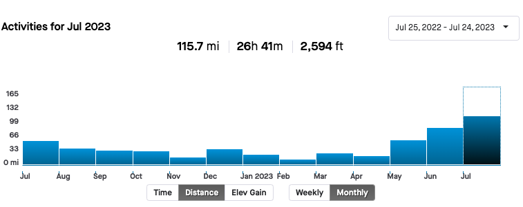 While I couldn't quite make 60 in May due to exhaustion, I was able to achieve 80 in June. A lot of this seems to be weather dependant, if it's hotter, it just kills me.