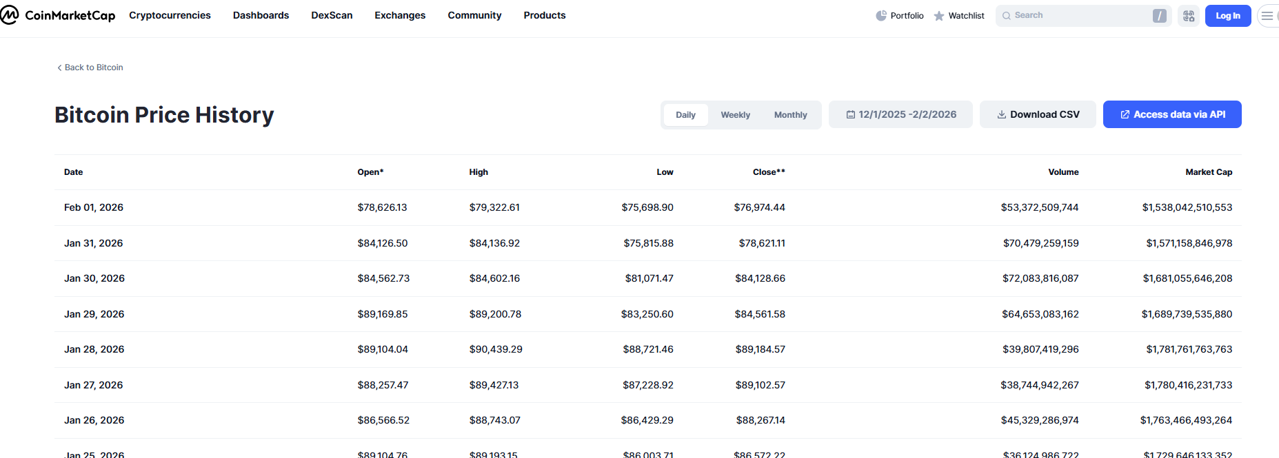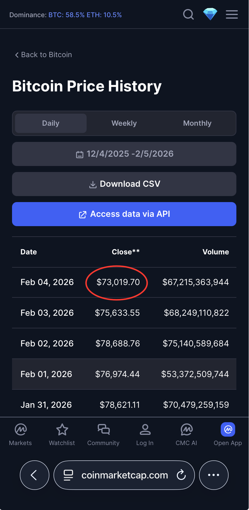 @Hakari description is sufficiently defined: “daily closing price of BTC/USD as reported on CoinMarketCap.” all you need is there, including the timezone https://coinmarketcap.com/currencies/bitcoin/historical-data/