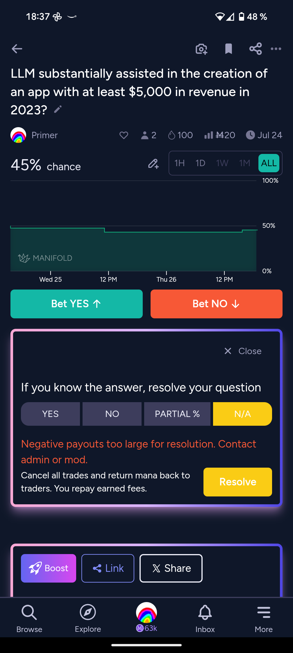 (20 Mana in total invested in the market, so no idea what's the problem)