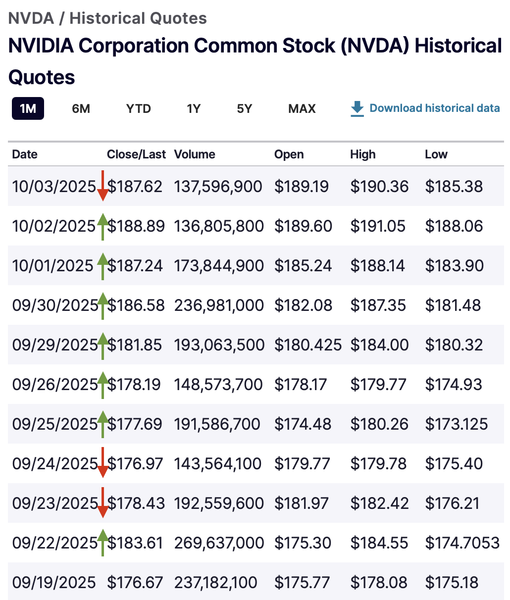 NVIDIA Corp - Resolves to Nasdaq Historical Data