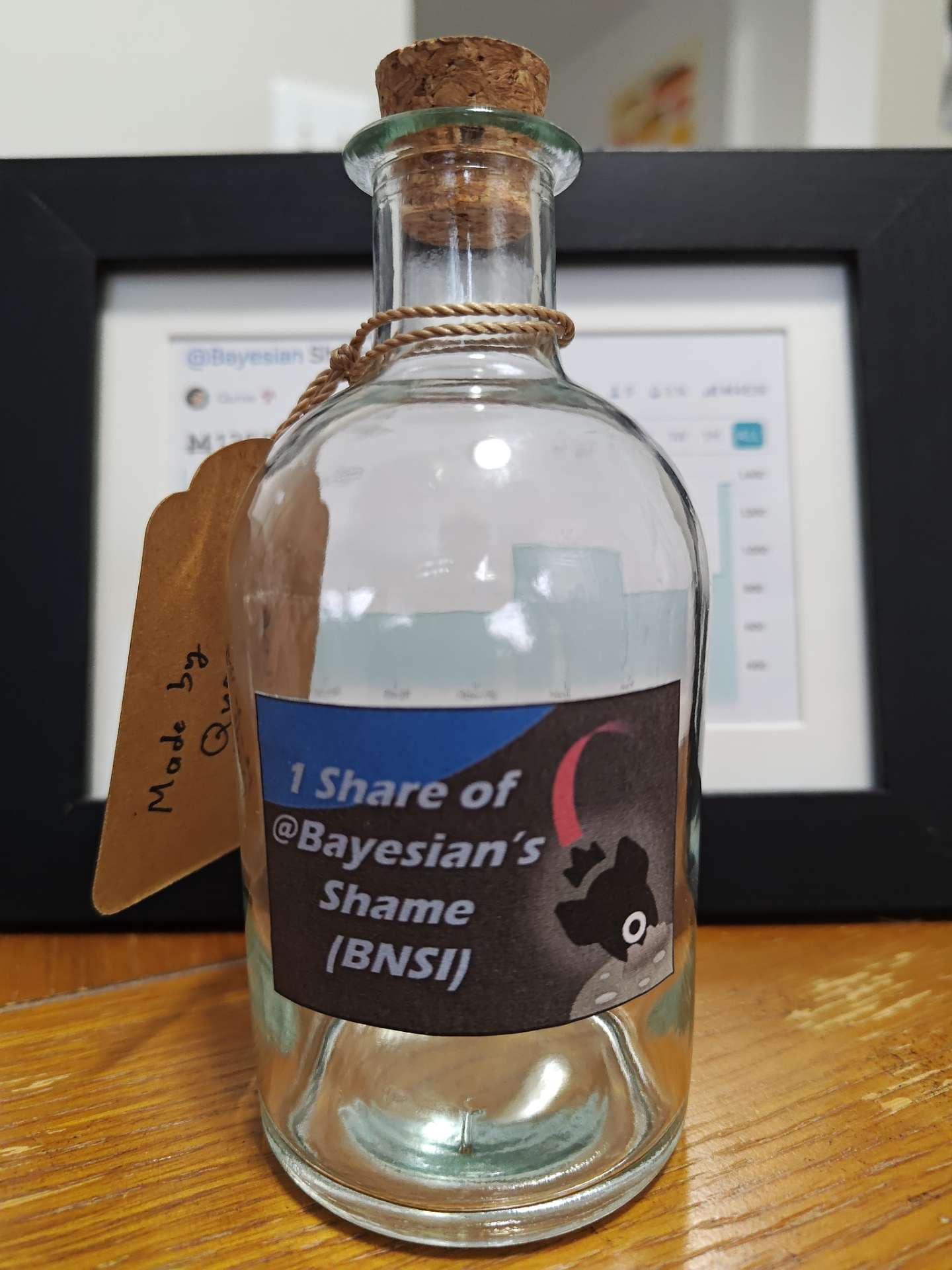 @bens As the first person to obtain a full share of BNSI, I will send this ethically sourced, 100% pure extract of @Bayesian's shame to you if you promise to never go below 1 BUY share of BNSI, on pain of shame if you do.