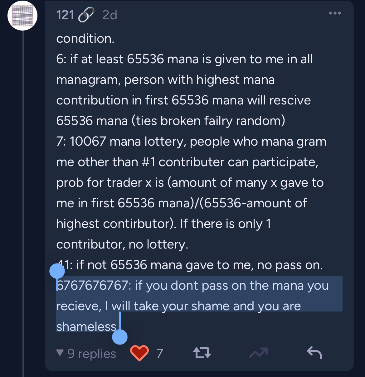 Shame upon the Manifolder who breaks the chain. That, or shame may be brought upon the Manifolder who sends their managram payload to an inactive or distrustful user.