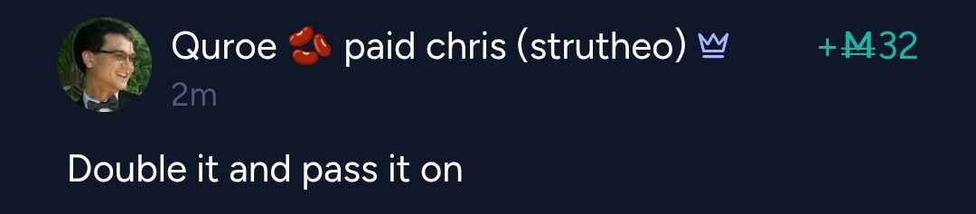 A new Manifolder is added to the chain when they managram another user with a memo that contains and starts with the phrase "double it and pass it on" (non-case sensitive). I may make good-faith exceptions to this memo rule at my discretion.
