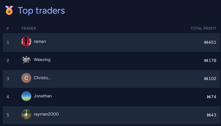 Special congratulations to @BURNTramenNoOdLeS @Weezing @ChristopherRandles @JonathanNankivell and @rayman2000 for finishing in the top5! This was not an easy predicton market at all!