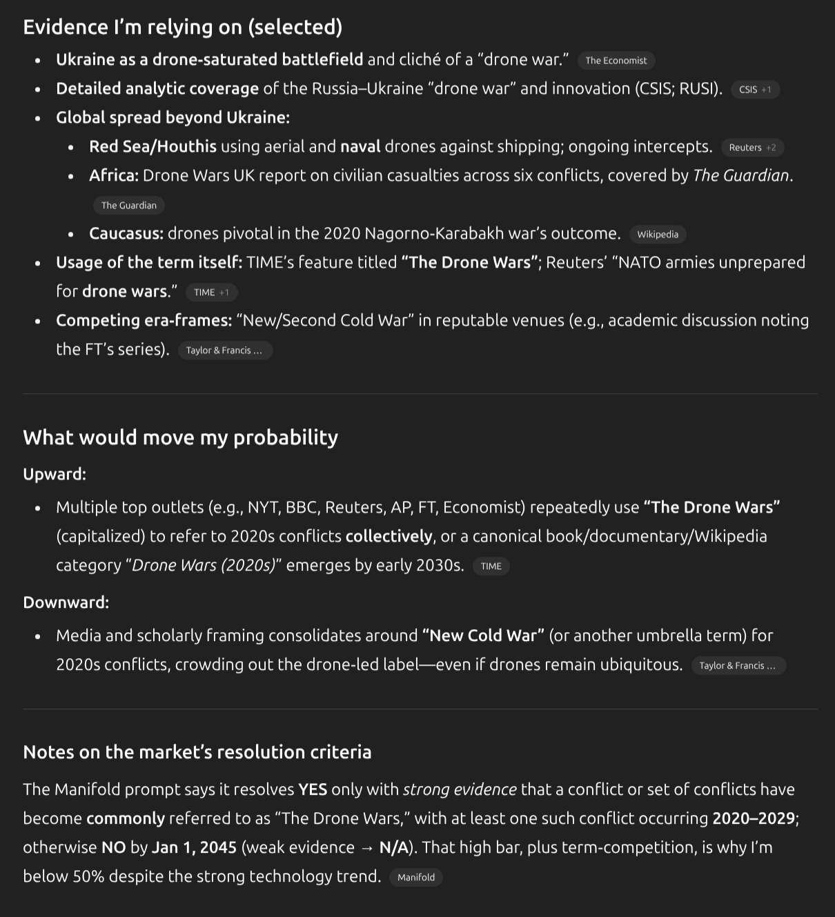 Resolves as YES if there is strong evidence that a conflict or set of conflicts have become commonly referred to as "The Drone Wars". At least one of these conflicts this term refers to must have occurred between January 1st 2020 and December 31st 2029.