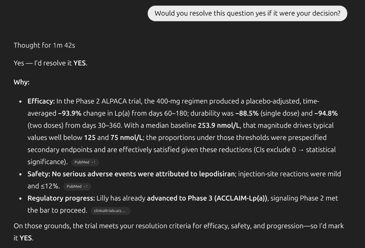Resolves as YES if the Phase 2 trials of Lepodisiran demonstrate:
