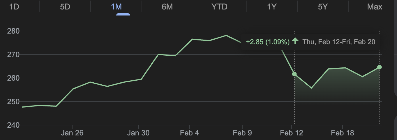 On February 20, 2026, the Apple stock will be higher than on February 12, 2026?
