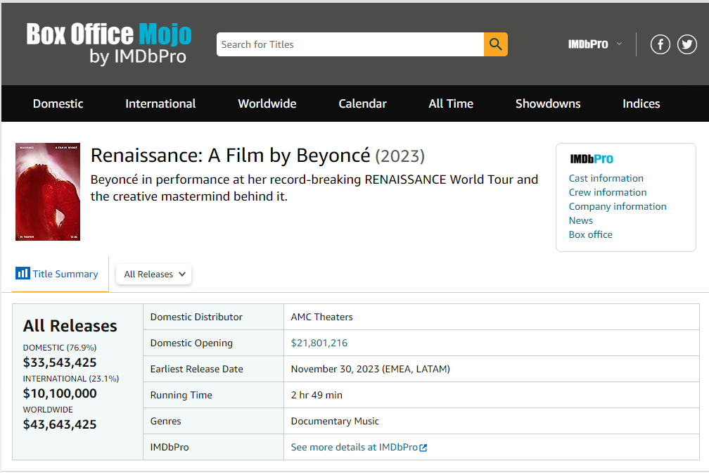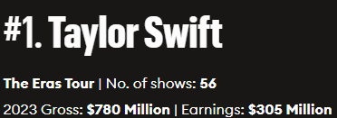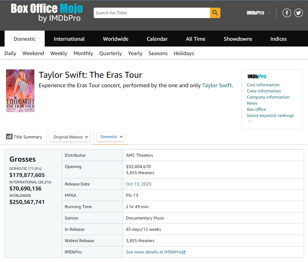 @SirCryptomind I think that this was actually supposed to be about the Swift concert vs the Beyoncé movie, which is still out (but has grossed less than $100mil)