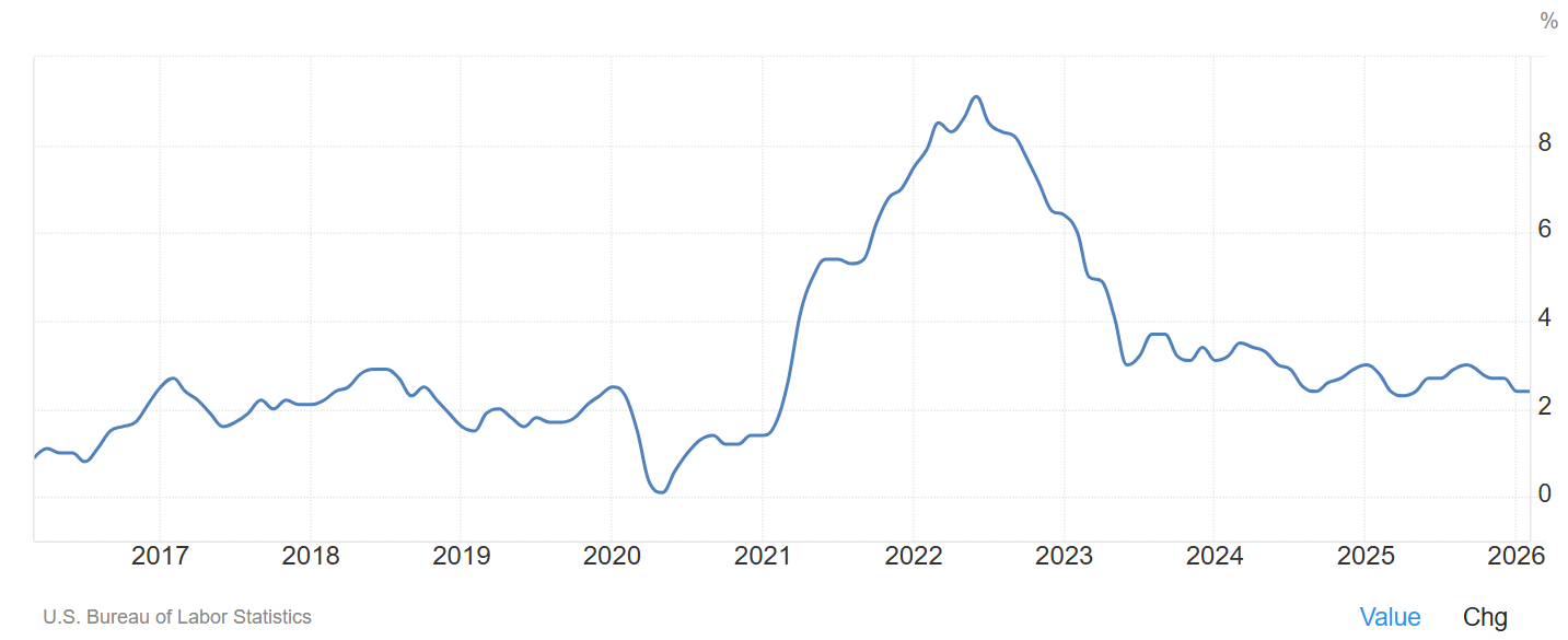 The yearly inflation rate refers to the consumer price index (CPI) inflation rate as announced on the US Bureau of Labor Statistics website.