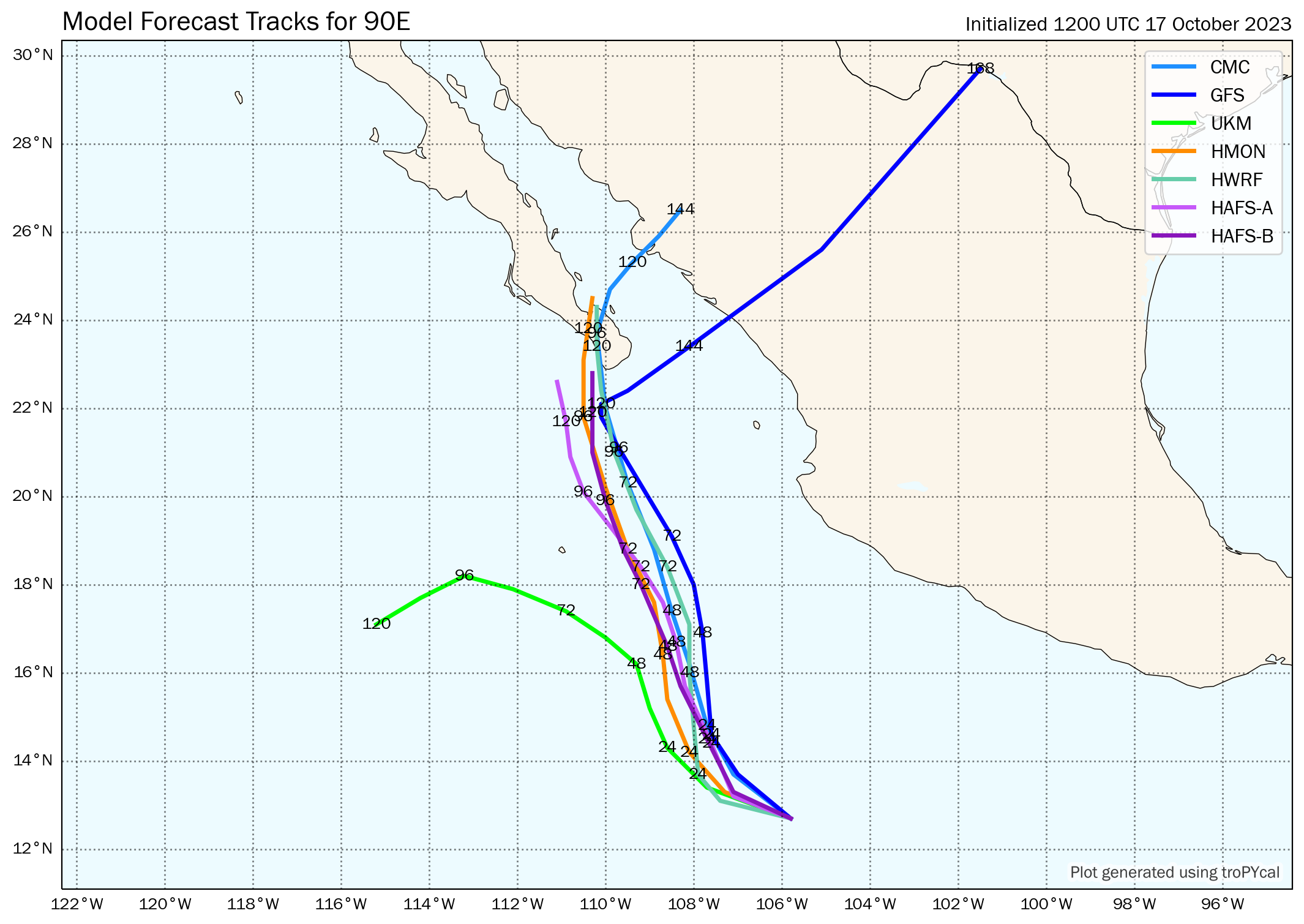 Will Norma / 90E therefore make landfall in Mexico, as a tropical storm or a stronger cyclone, just a week or so after Lidia has pounded the region with heavy rain and wind?