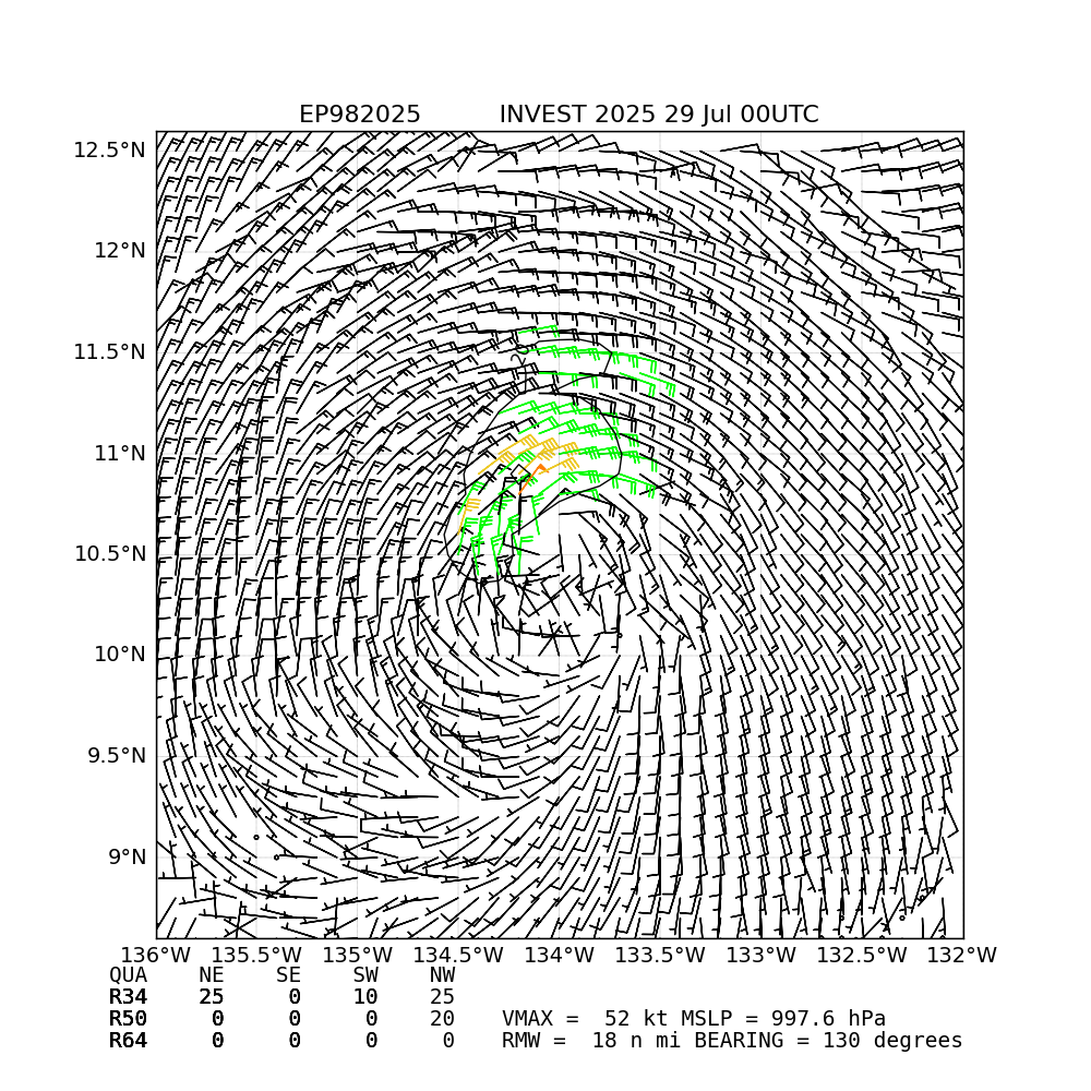 Based on 12Z ensemble genesis mean paths shouldn't be any further scat. passes before 00Z (the earlier oceansat-3 pass from 18:59Z that isn't available yet, and the HY-2C pass later (around 00:53Z) I estimate should be misses)