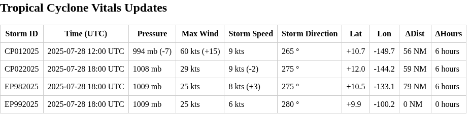 Update 2025-07-31 (PST) (AI summary of creator comment): For this market, resolution will be based on the timezone used in the official advisory (HST), not the geographical timezone of the storm's formation.
