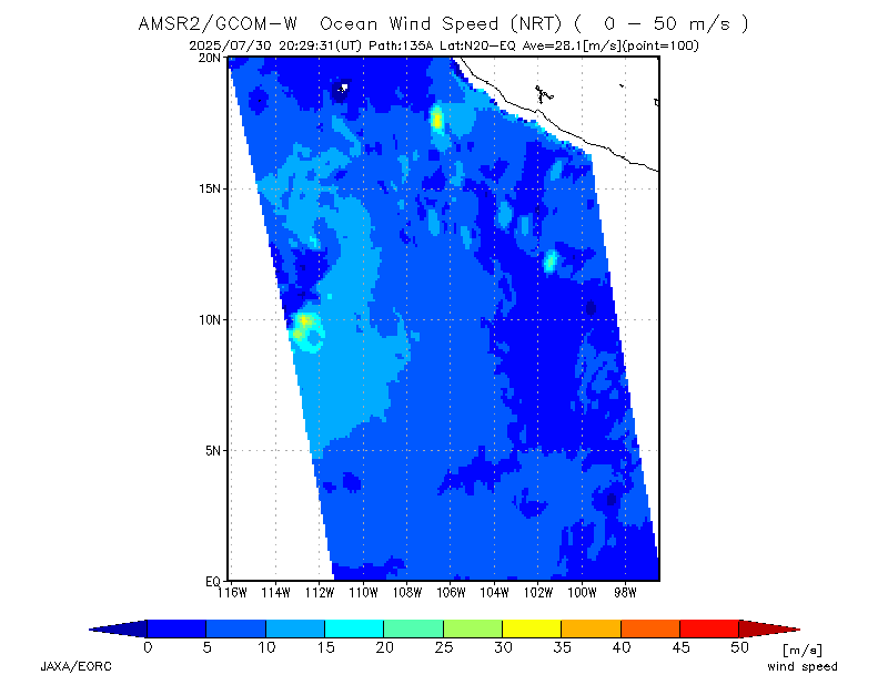 AMSR2 winds from GCOM-W1 bin near the center as 28-38 kt winds, and satellite wind analysis from CIRA show even lower winds near 20kt but oddly OSPO's satellite winds product shows a small cell of much higher winds for the last two cycles (it is usually fairly high but this is unusual):