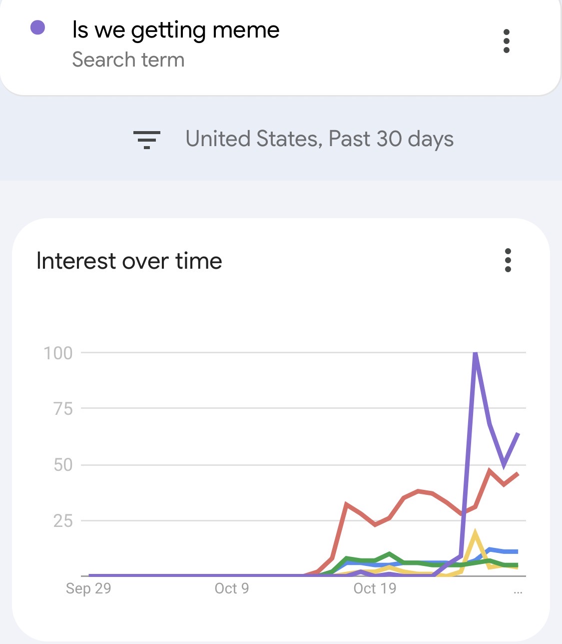 As for the reason why "is we getting meme" specifically spiked on Oct. 25, that's probably because this tweet was posted that day and got 2 million views.