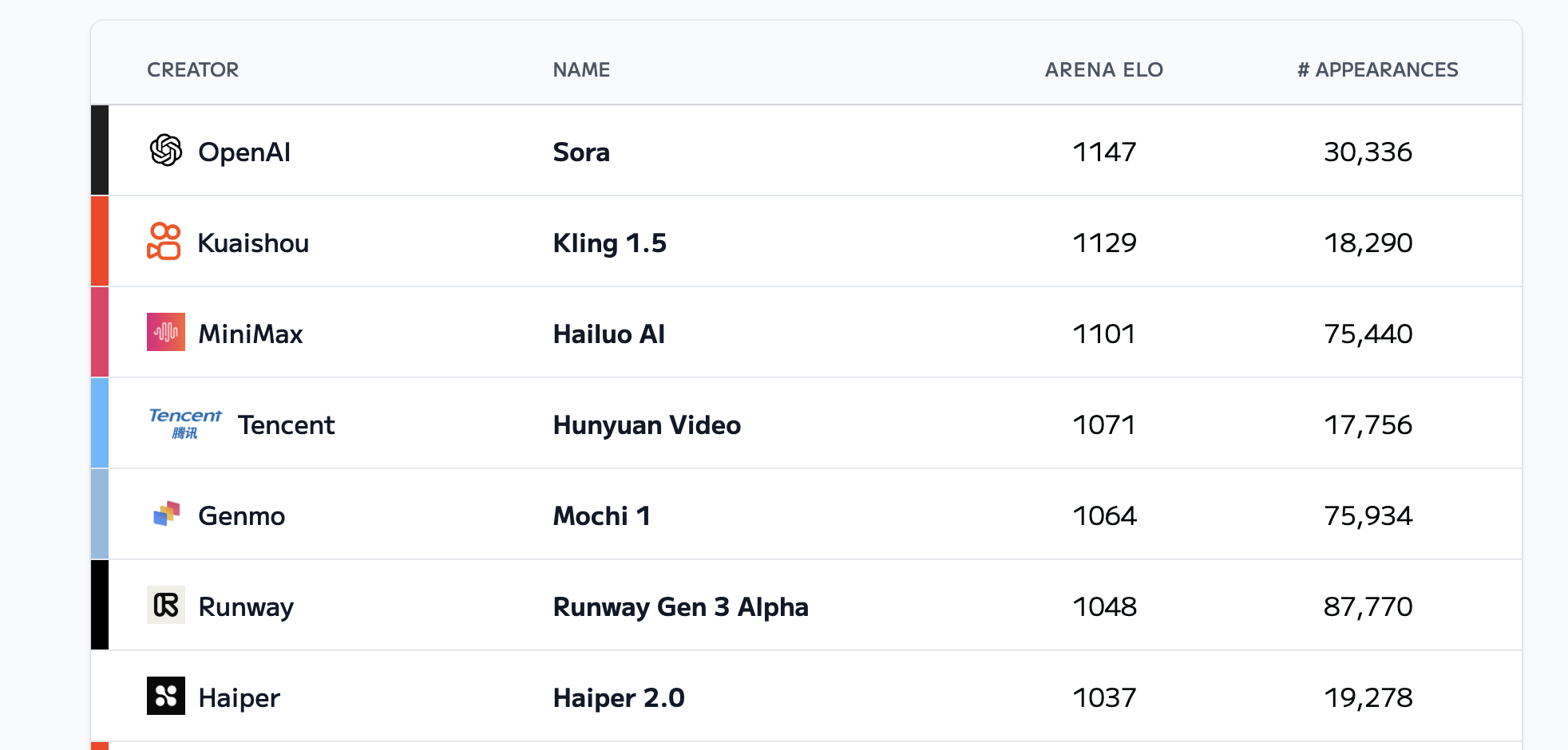 Top 3 Video Generation Models by Company/Organization EOY 2024