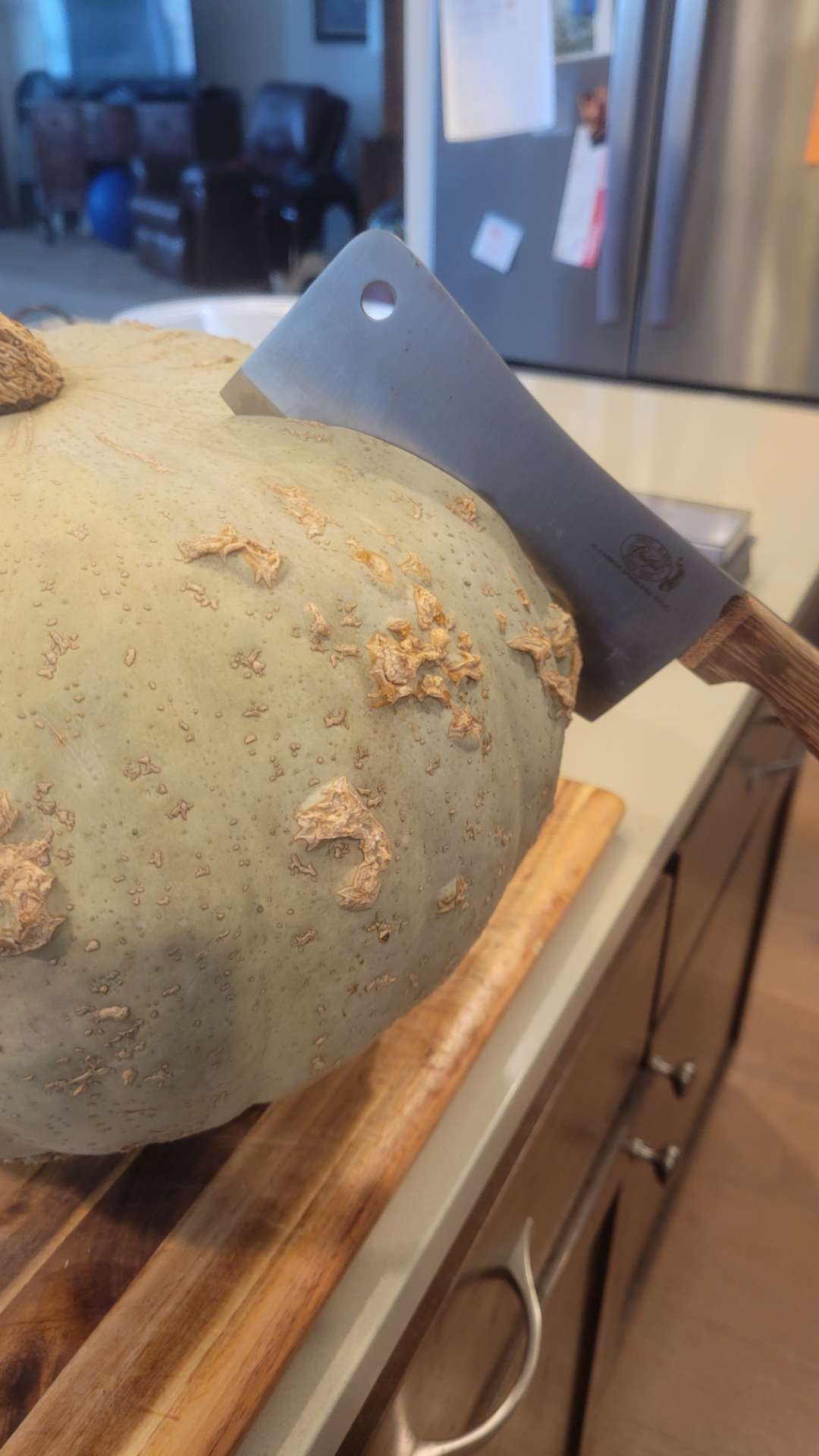 Step aside other squashes and pumpkins: butternut, acorn, delicata, pie, hokkaido, and friends; you're unwanted here. This large scaly light green-grey pumpkin is a Sweet Meat Squash.