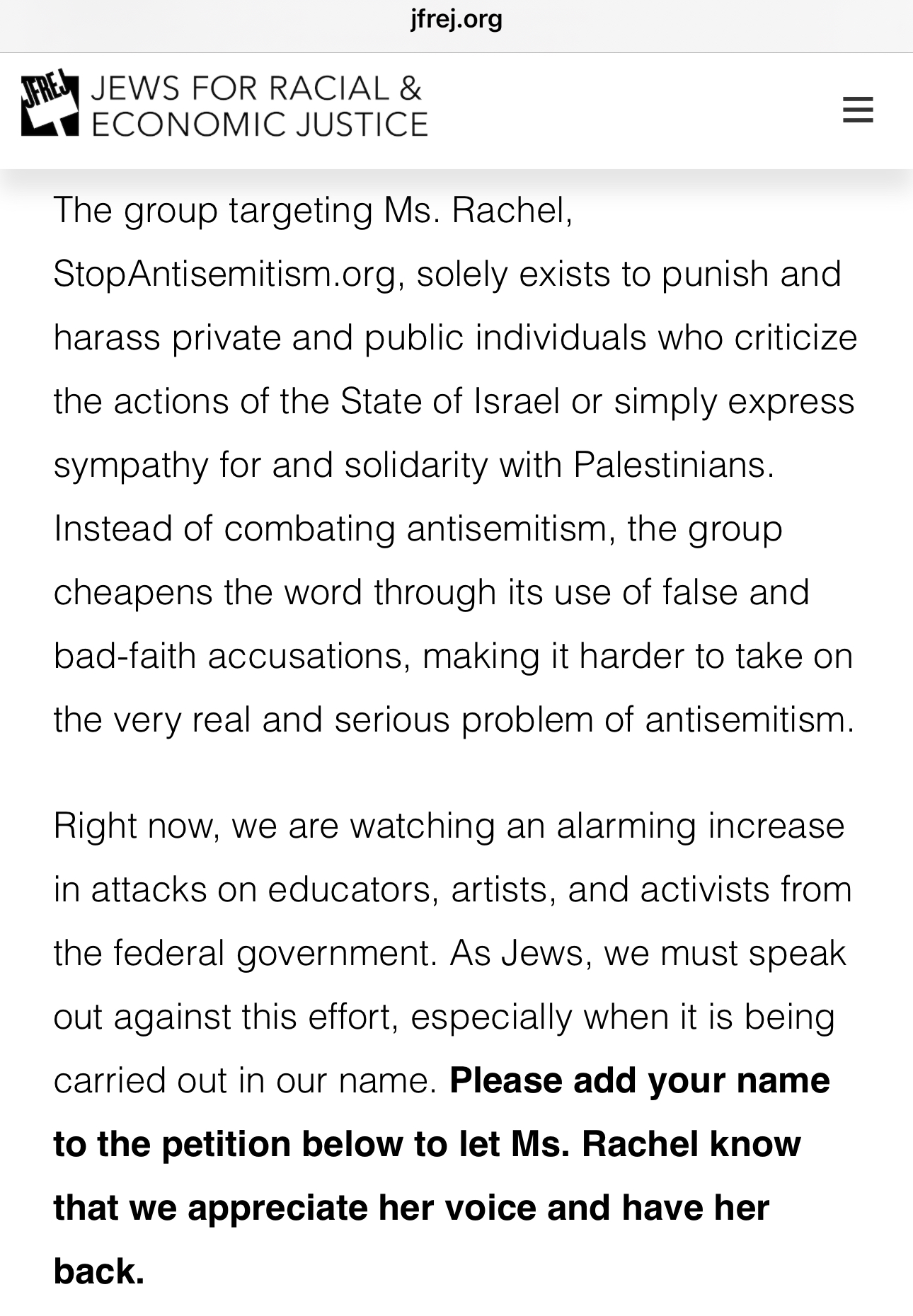 ‘Perceived by the public as an antisemite’ Is hard because if ONLY pro Israel people believe you are anti Semitic I find it a bit hard to believe. For example, I’ve seen Jewish people defending Ms Rachel and Cynthia Nixon. And They just don’t come across as anti semetic at all, unless you think criticising Israel means you hate Jewish people.