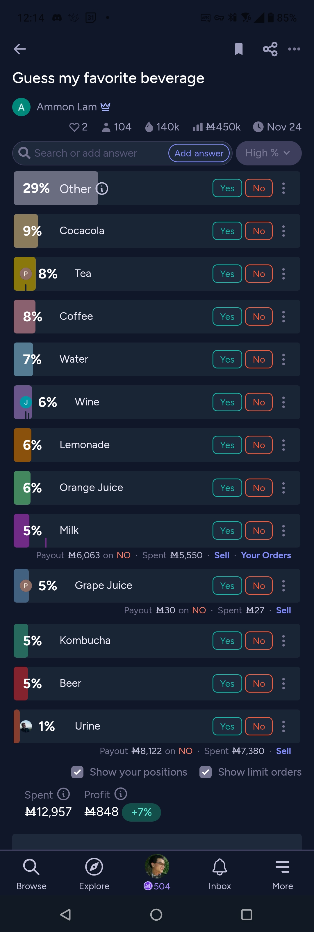 I used most of my balance betting that Ammon Lam doesn't like drinking urine. I need a very short infusion until that resolves on the 24th.