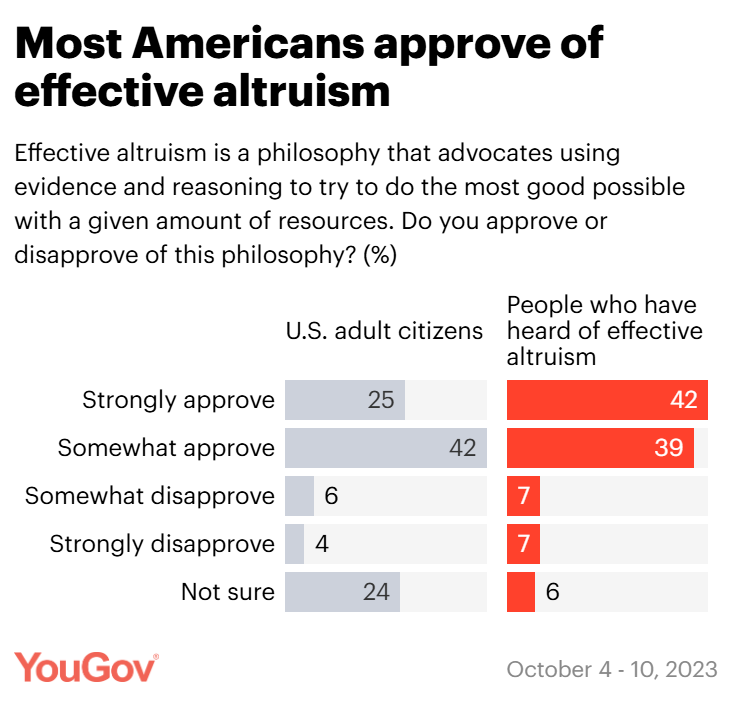 YouGov unfortunately only seems to have a single data point of approval ratings for the Effective Altruism movement, in Oct 2023, although it is surprisingly positive