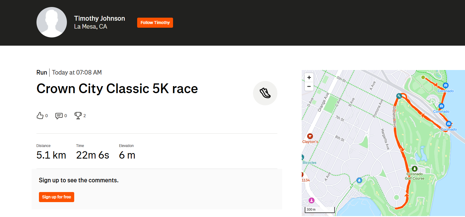 You can follow my training on Strava: Timothy Johnson | Strava Runner Profile.