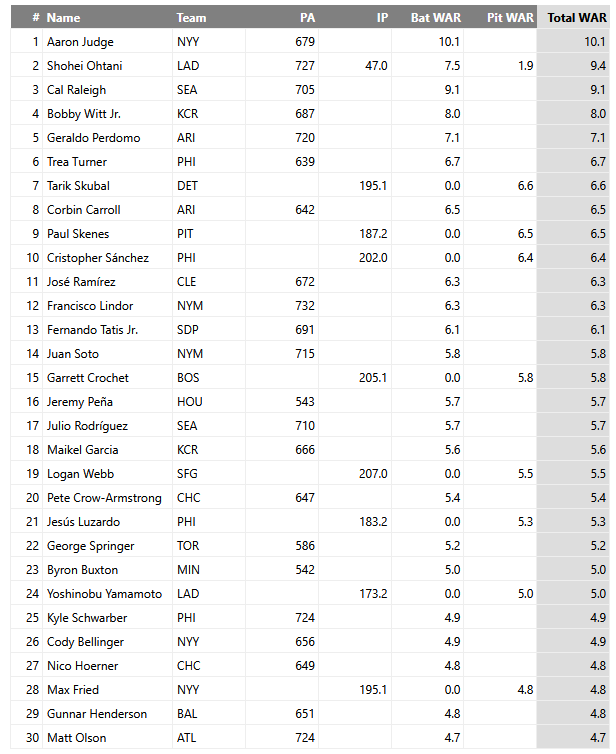 YESAt least 7.8 (what Freddie Freeman got in his highest WAR season, 2023)
