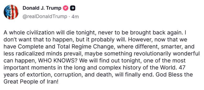 Trump will nuke Iran by 8pm EST 10 April 2026