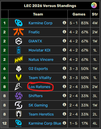What will Los Ratones place in LEC Versus? (out of 12)