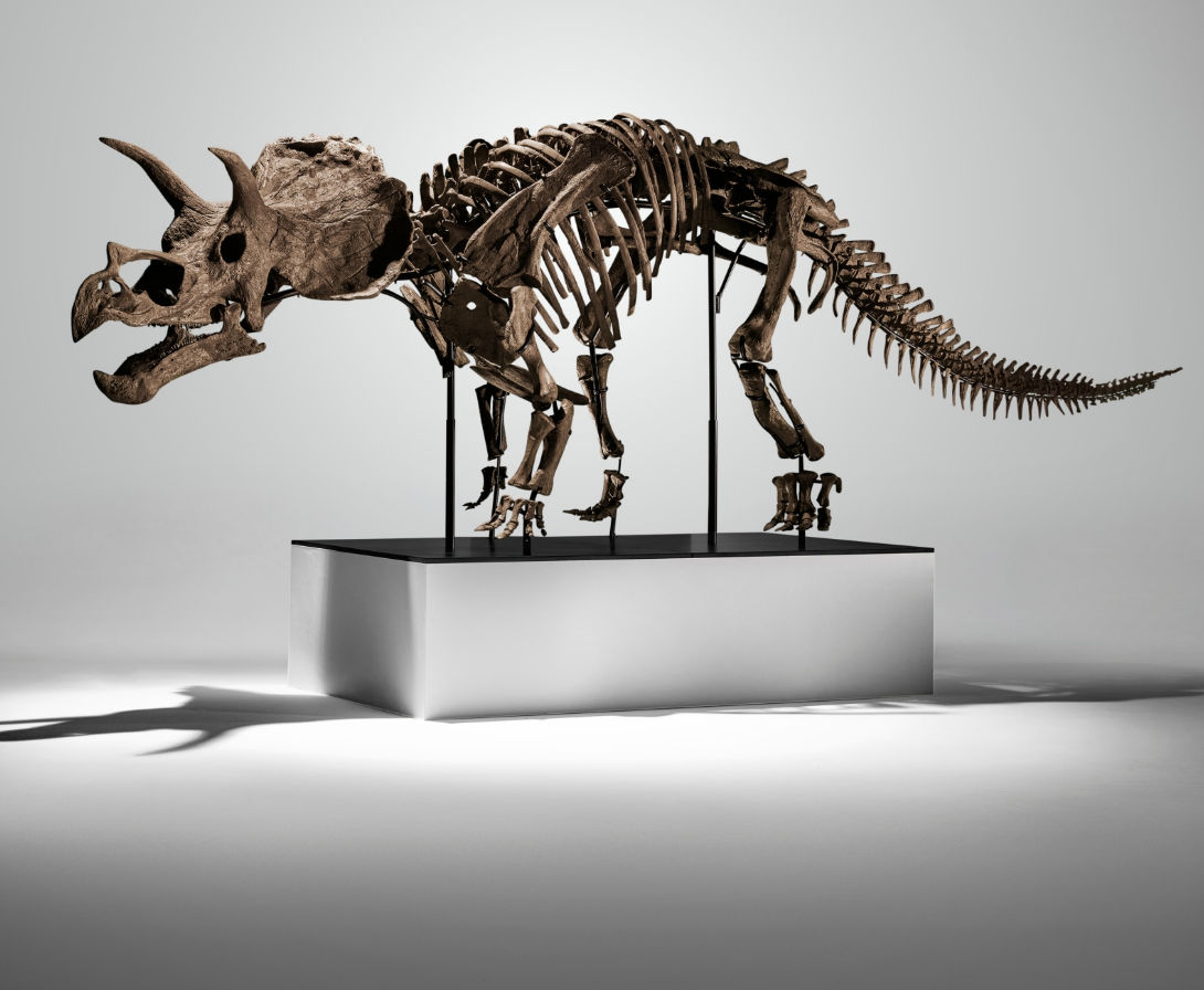 Cera, a beautifully preserved juvenile Triceratops, is a singular example of this rarity. Measuring approximately 4.40 m in length and retaining over 70% original bone, the skeleton offers an intimate view of this iconic genus during an early stage of development. Its preservation, anatomical integrity and museum-quality mounting place it among the most significant juvenile dinosaur specimens ever offered and likely the finest juvenile Triceratops yet discovered. (Lot essay)