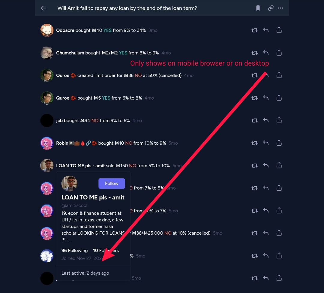 This market predicts whether Amit will fail to repay his loan by the end of the loan term. Failure to repay includes ONLY missing the final loan expiration payment. Resolution will be based on official loan statements or confirmation from the lender, lendee or both.