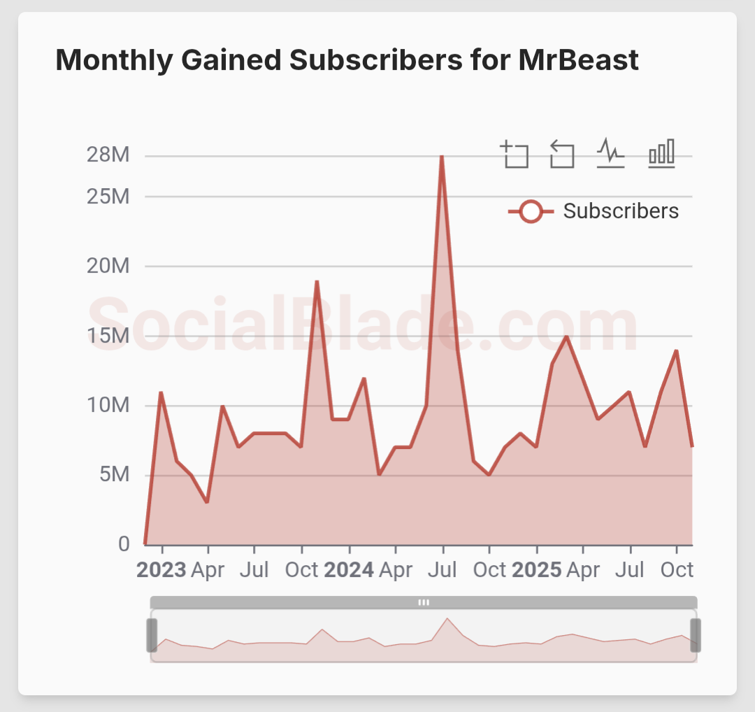 Main channel only (https://www.youtube.com/@MrBeast), and in ET timezone.