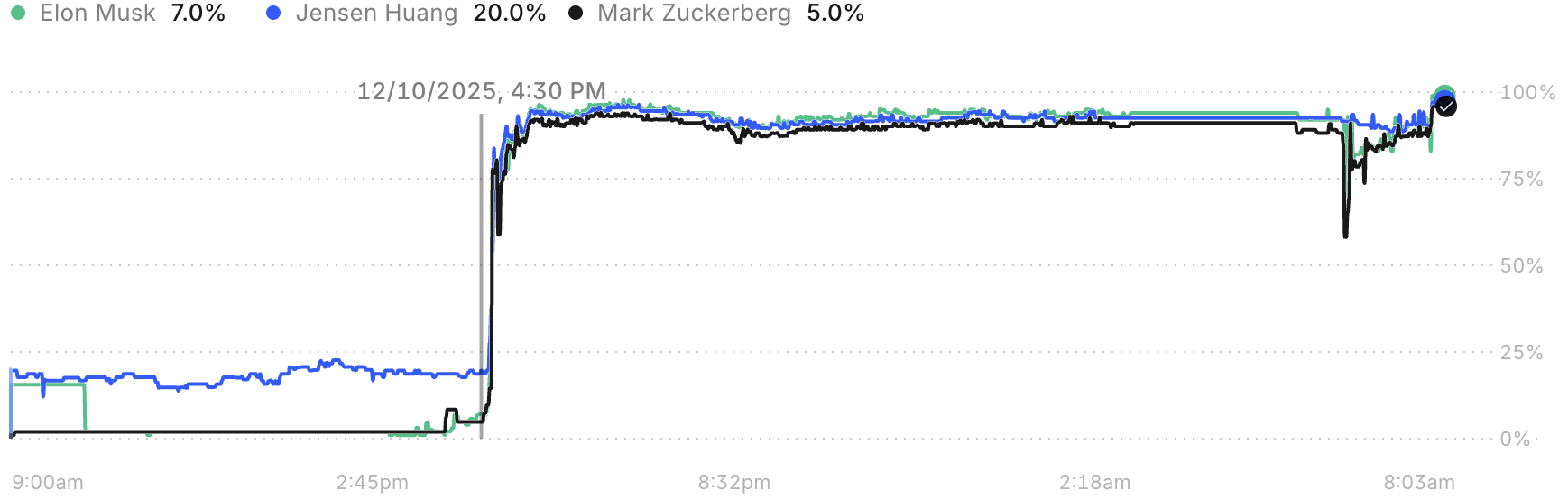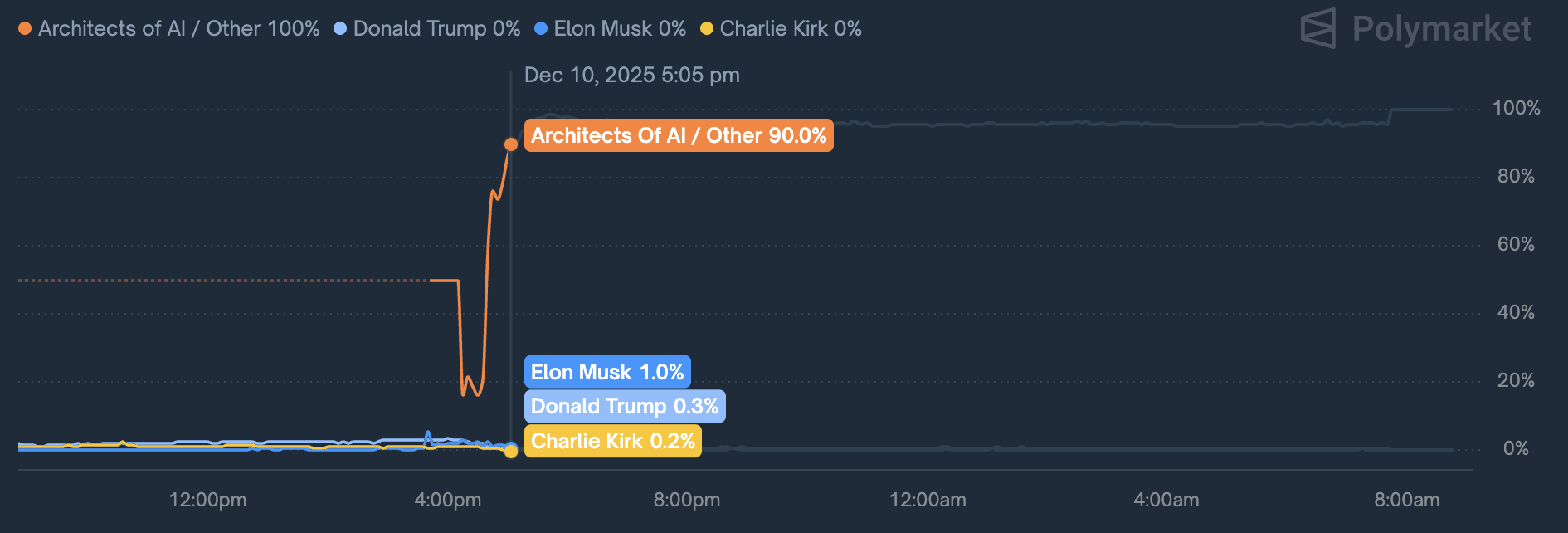 - Polymarket going from <20% at 10:35 CET to >80% at 10:40 CET