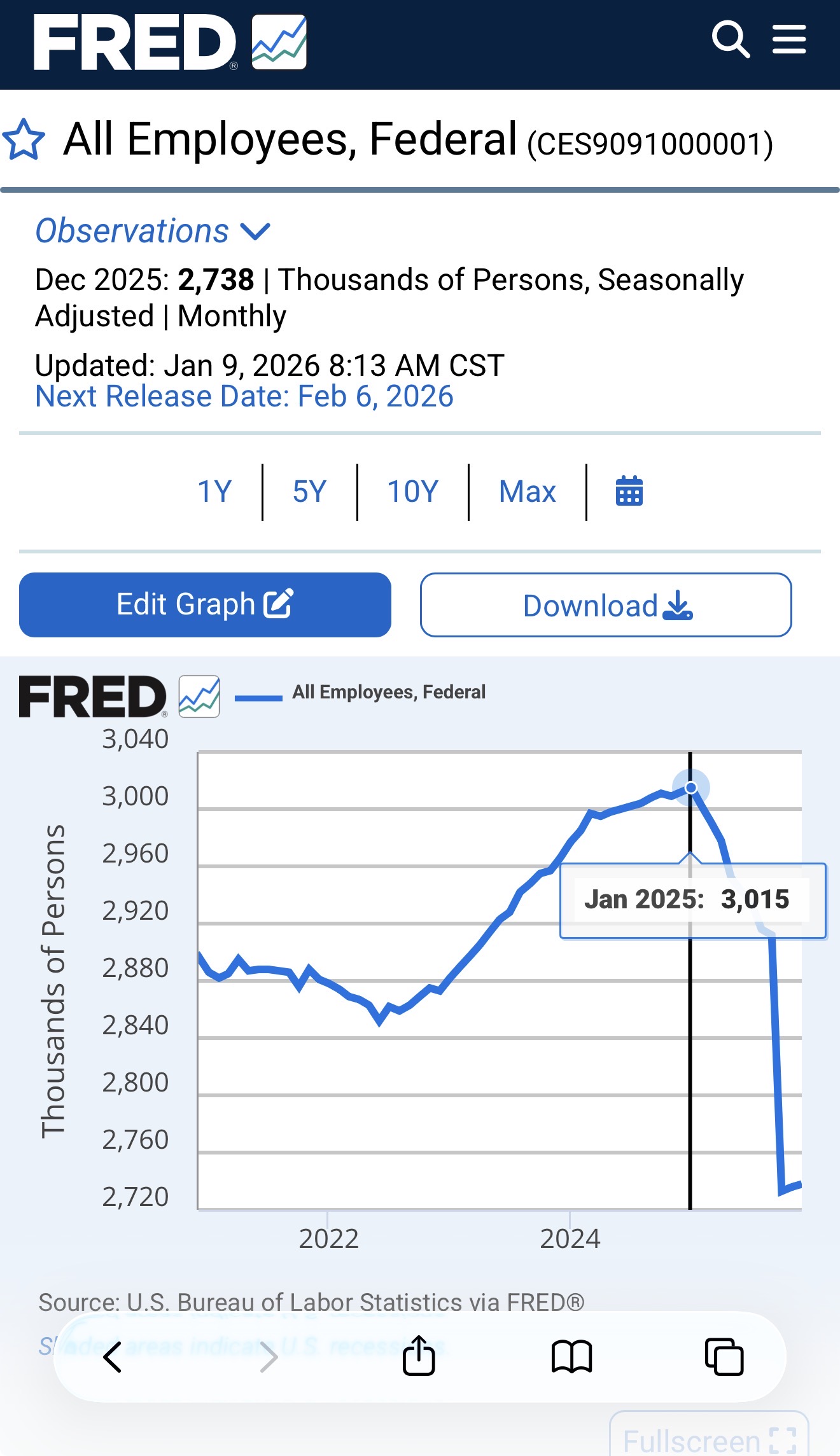 Resolution will be based on the official FRED data: https://fred.stlouisfed.org/series/CES9091000001