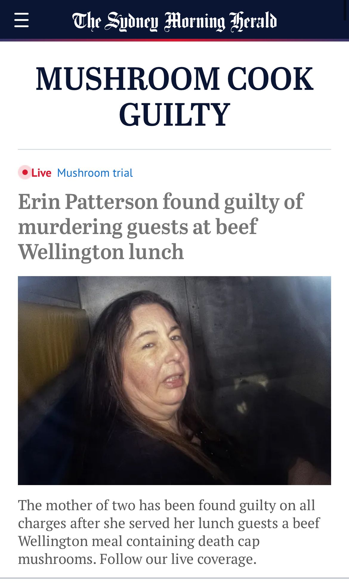 She's very very likely guilty in my mind, but I'm not sure the jury will find her guilty. There's no evidence definitively showing that she knowingly harvested death cap mushrooms and added them to the meal.