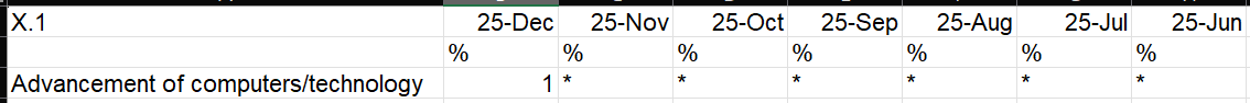 The list of answers is long and includes "the advancement of computers/technology", which polls below 1% and often below 0.5%. Late last year, however, technology polled at 1% (go to the 2nd page or click "get the data").