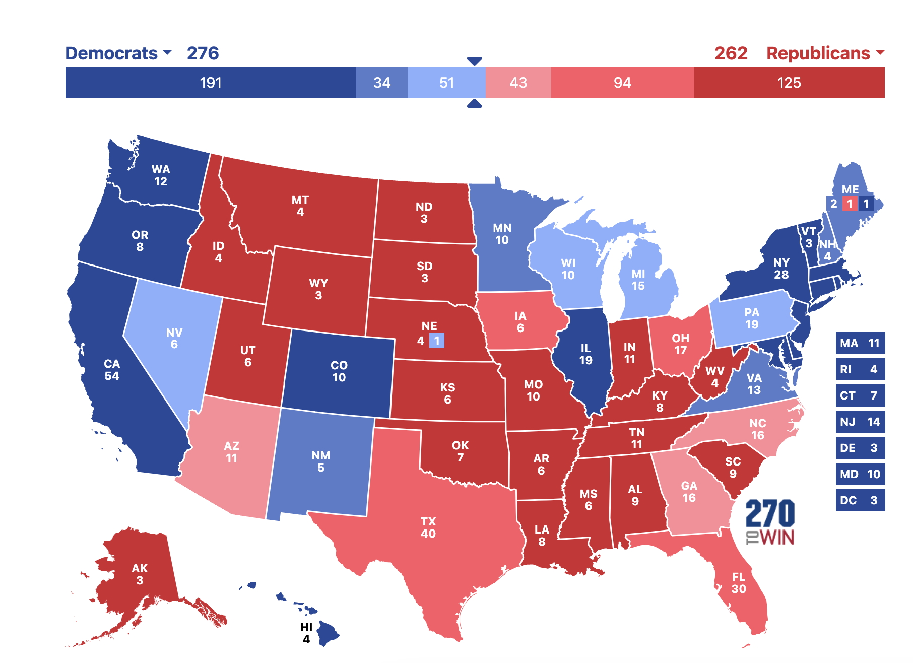 Will the winner of the 2024 US Presidential Election get more than 280 electoral votes?