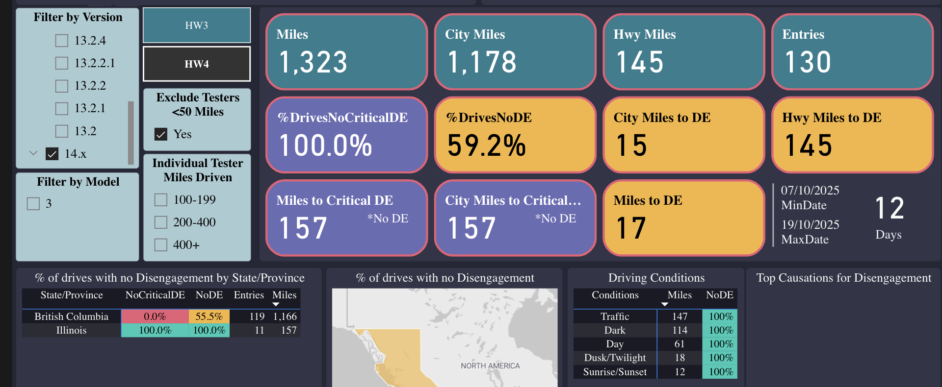 I am saying the data is much more limited than that. While there is 1817 miles with v14, most of these miles are in Canada which are not used. There is only 228 miles in the USA with no critical or other disengagement event, hence the 'Miles to critical DE *No DE' showing as 228.