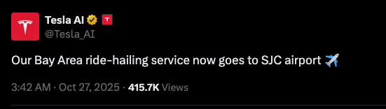 If you're looking for a bear argument, consider the relative silence on the Tesla Robotaxi account, with no sign of adding more cars in Austin.
