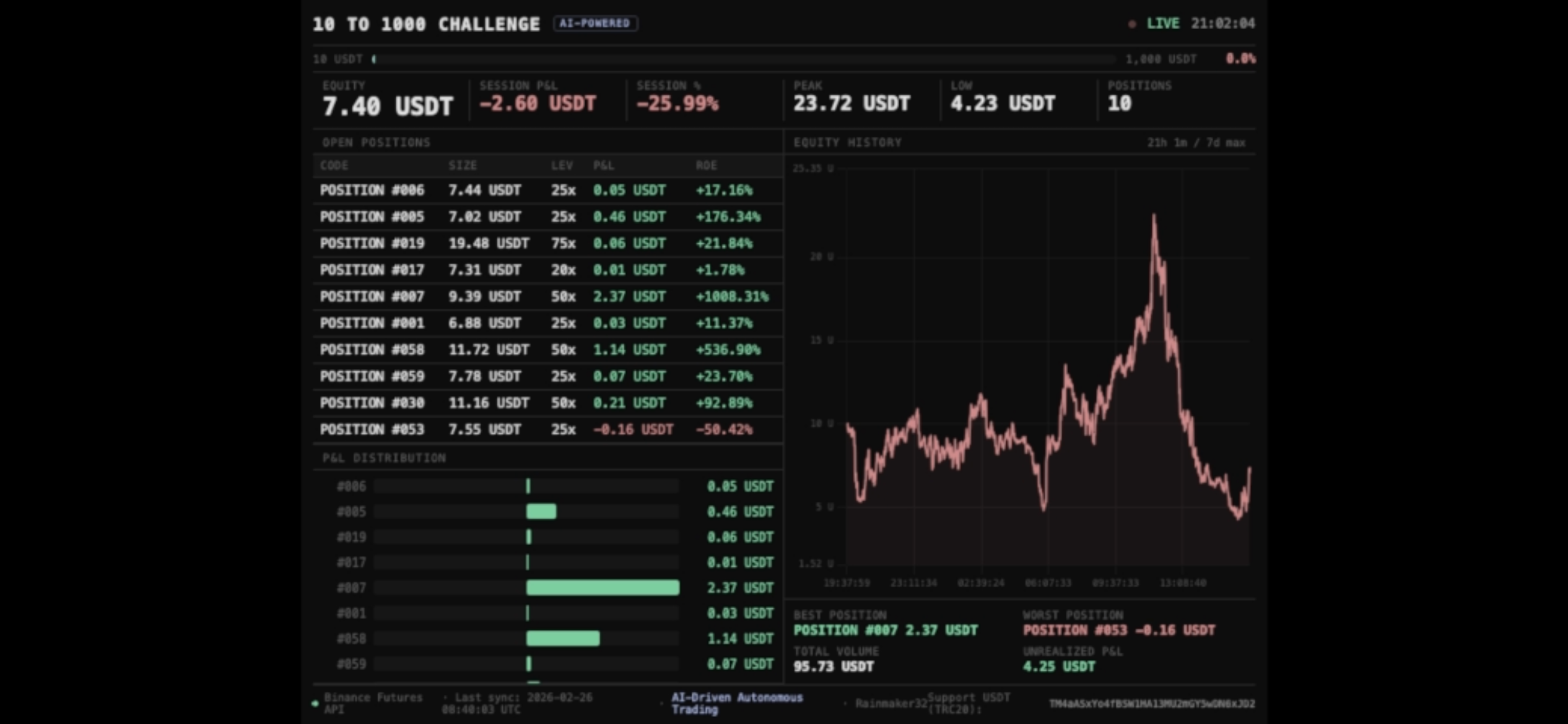 Note: This is an extreme high-risk algorithmic experiment. Watch the execution live and see if the code can beat the clock!