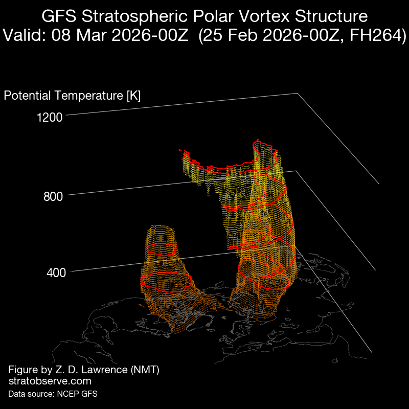 The PV split that may/may not happen after the strat. warming in the next 2-5 days is still uncertain but I'm leaning more towards a stretched vortex. The GFS analysis on stratobserve shows the upper levels of the PV being split while the lower levels keeping coherence, but its still very far out.. GEPS seems less bullish on a PV split from what I can observe. Similarly perhaps for ECMWF and the ensembles as far as I can tell...