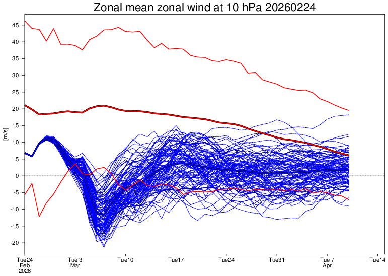I think its still too far out to say whether we will get a polar vortex split from the medium range models, but if the rough timing from the last few runs verifies we will probably start to see a resulting plateau in the end of February .... (probably a trend similar to 2025 then but delayed a week ?). Though, there should be a bit more confidence in predicting it this time given how stretched it is already (at the very least it looks like a pair of anticyclones develop from the upper stratosphere downwards this time) ...