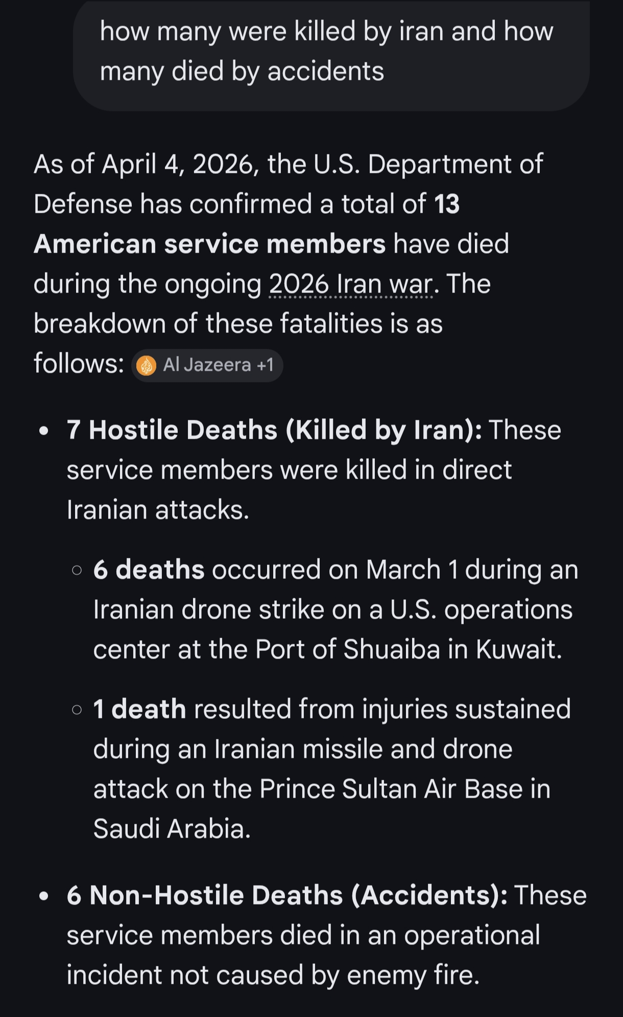 Not so much in other markets. For example, 500 american casualties by end of year is very very plausible if you consider invasion of islands/mainland, attempts to open hormouz, terrorrist attacks, etc.